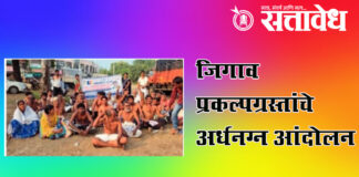 Team Sattavedh project-affected people stage a half-nude protest : योग्य मोबदला न मिळाल्यास जलसमाधी आंदोलनाचा इशारा Buldhana जिगाव प्रकल्पासाठी गेलेल्या जमिनीचा अद्यापही योग्य मोबदला न मिळाल्याने प्रकल्पग्रस्त शेतकऱ्यांचा संताप उफाळून आला आहे. बुलढाणा शहरातील जिजामाता प्रेक्षागृहाजवळ संविधान आर्मीच्या नेतृत्वात प्रकल्पग्रस्तांनी अर्धनग्न आंदोलन छेडले. “शासनाने आमच्या मागण्या मान्य केल्या नाहीत, तर आम्ही जलसमाधी आंदोलन करू,” असा … Continue reading Jigao Project : जिगाव प्रकल्पग्रस्तांचे अर्धनग्न आंदोलन
