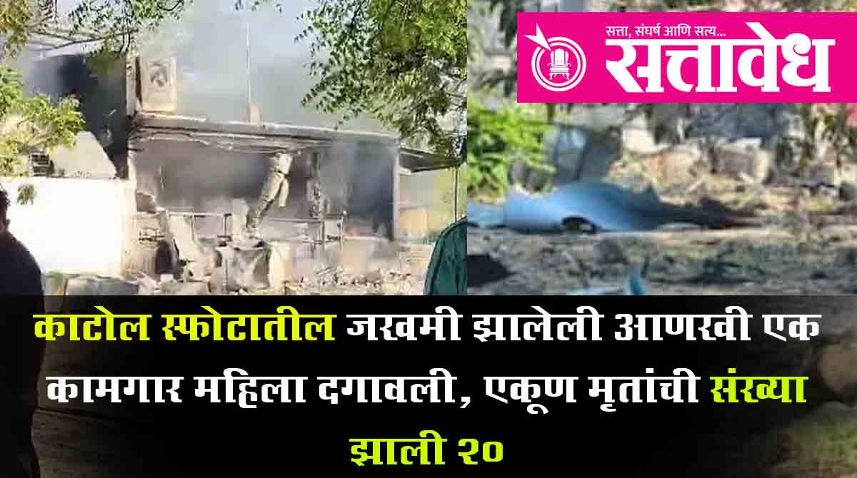 Nagpur काटोल तालुक्यातील राऊळगाव येथील बारुद तयार करणाऱ्या कंपनीत झालेल्या स्फोटात एकूण १९ जणांचा मृत्यू झाला होता आणि १७ कामगार गंभीर जखमी झाले होते. जखमींमधील आणखी एक महिला दगावल्याने आता मृतांचा आकडा वीसवर गेला आहे. मृत महिला नरखेड तालुक्यातील थाटुरवाडा गावातील रहिवासी आहे.