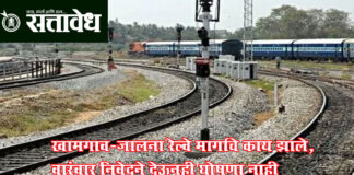 Team Sattavedh khamgao-jalna-railway-route-follow-up-demand-mla-shweta-mahale : रेल्वे लोकआंदोलन समितीनेचा लोकप्रतिनिधींना सवाल Chikhli बुलढाणा जिल्ह्याच्या विकासाला नवी दिशा देऊ शकणाऱ्या खामगाव जालना रेल्वेमार्ग प्रकल्पाला गती मिळावी यासाठी राज्य शासनाने केंद्राकडे अधिक जोरकस पाठपुरावा करावा, अशी मागणी रेल्वे लोकआंदोलन समितीने केली आहे. या संदर्भात समितीच्या पदाधिकाऱ्यांनी आमदार महाले यांची भेट घेऊन निवेदन सादर केले. मराठवाडा आणि विदर्भाला थेट जोडणाऱ्या … Continue reading Khamgao-jalna railway route : खामगाव-जालना रेल्वे मार्गाचे काय झाले, वारंवार निवेदने देऊनही घोषणा नाही