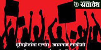 Team Sattavedh Protest held for demands from farm loan waiver to taluka creation : कर्जमुक्तीपासून तालुका निर्मितीपर्यंत मागण्यांचा भडिमार; शासनाच्या भूमिकेकडे लक्ष Khamgao शेतकरी, कामगार, भूमिहीन व कष्टकऱ्यांच्या प्रलंबित आणि न्याय्य मागण्यांकडे शासनाचे लक्ष वेधण्यासाठी १२ डिसेंबर रोजी खामगाव येथील उपविभागीय अधिकारी (एसडीओ) कार्यालयावर भूमिहीन आक्रोश मोर्चा काढण्यात आला. वाढत्या असंतोषाच्या पार्श्वभूमीवर हा मोर्चा स्थानिक … Continue reading Landless launch agitation : भूमिहीनांचा एल्गार, खामगाव एसडीओ कार्यालयावर ‘आक्रोश मोर्चा’