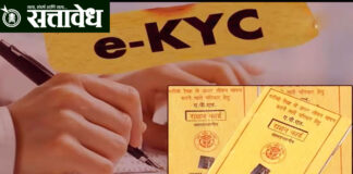 Team Sattavedh Ration of 4.88 lakh beneficiaries will be stopped if E-KYC not done : ई-केवायसी करण्यासाठी आज अखेरचा दिवस, शासनाचा इशारा Buldhana जिल्ह्यातील शिधापत्रिकाधारक लाभार्थ्यांसाठी ई-केवायसी (e-KYC) करणे अनिवार्य करण्यात आले असून, ३१ जुलैनंतरही ई-केवायसी न केल्यास संबंधितांचे रेशनचे लाभ थांबवण्यात येणार आहेत. जिल्ह्यातील एकूण १९ लाख १७ हजार २१९ लाभार्थ्यांपैकी केवळ १४ लाख … Continue reading Last day for E-KYC : तर ४.८८ लाख लाभार्थ्यांचे रेशन होणार बंद!