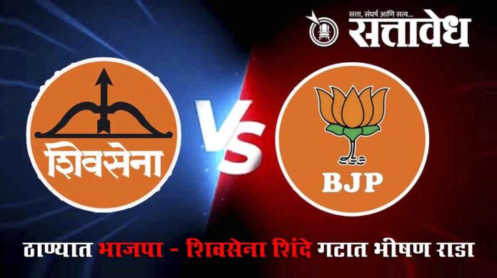 महाराष्ट्रात स्थानिक स्वराज्य संस्थांच्या निवडणुका तोंडावर असताना भाजप – शिवसेना एकनाथ शिंदे गटात वाद चिघळलेला दिसतोय. काही दिवसांपासून दोन्ही पक्षांमध्ये प्रवेशासंदर्भात नाराजी वाढली आहे. या तणावामुळेच एकनाथ शिंदे गटाचे मंत्री थेट उपमुख्यमंत्री देवेंद्र फडणवीस यांच्याकडे तक्रार घेऊन गेले होते, तर स्वतः एकनाथ शिंदे दिल्लीतील बैठकीत गृहमंत्री अमित शाह यांना यासंदर्भात तक्रार केल्याची माहिती समोर आली होती. पक्षातील घडामोडींवरून निर्माण झालेला हा वाद आता दिल्लीपासून ठाण्याच्या रस्त्यांवर उतरल्याचे दिसत आहे.