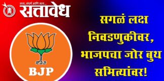 Team Sattavedh BJP forms 1,741 booth committees : अकोल्यात 1,741 बुथ समित्यांची रचना; महानगर, ग्रामीणचा समावेश Akola स्थानिक स्वराज्य संस्थांच्या निवडणुकांचा पेच अद्याप सुटलेला नाही. पण भाजप जोरदार तयारीला लागले आहे. भाजपचा पूर्ण जोर बुथ समित्यांवर आहे, हे पुन्हा एकदा सिद्ध झाले. त्याच पार्श्वभूमीवर भाजपने अकोल्यात १७४१ बुथ समित्यांची रचना केली आहे. भारतीय जनता … Continue reading Local Body Elections : सगळं लक्ष निवडणुकीवर, भाजपचा जोर बुथ समित्यांवर!