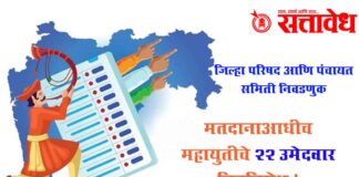 Team Sattavedh Municipal Corporation like pattern in ZP Panchayat samiti : झेडपी-पंचायत समितीत महापालिकेसारखा पॅटर्न Mumbai : राज्यातील जिल्हा परिषद आणि पंचायत समिती निवडणुकांसाठी उमेदवारी अर्ज मागे घेण्याचा आज अंतिम दिवस होता. त्यामुळे 15 जिल्हा परिषद आणि 125 पंचायत समिती निवडणुकांमधील अंतिम लढतीचे चित्र स्पष्ट झाले असून आता प्रत्यक्ष प्रचाराला वेग येणार आहे. मात्र प्रचार … Continue reading Local body elections : मतदानाआधीच महायुतीचे 22 उमेदवार बिनविरोध !