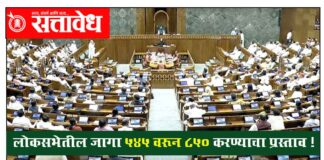 Team Sattavedh loksabha-seats-increase-850-mns-reaction-regional-language-concern-marathi : मनसेकडून प्रादेशिक भाषांवर धोका असल्याची तीव्र भूमिका Mumbai: देशाच्या राजकीय वर्तुळात २०२९ च्या लोकसभा निवडणुकांच्या पार्श्वभूमीवर मोठी चर्चा रंगू लागली असून लोकसभेतील एकूण जागा ५४५ वरून तब्बल ८५० पर्यंत वाढवण्याचा प्रस्ताव समोर आला आहे. केंद्र सरकारकडून संविधानाच्या १३१ व्या दुरुस्ती विधेयकाद्वारे हा बदल करण्याची तयारी सुरू असून हे विधेयक संसदेत सादर … Continue reading loksabha seats : लोकसभेतील जागा ५४५ वरून ८५० करण्याचा प्रस्ताव !