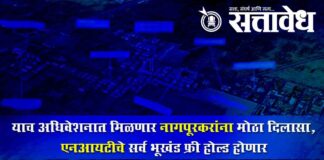 Team Sattavedh Alll-lands-of-nit-will-be-free-hold-soon : निवडणुकीच्या वेळी भाजप सरकारने दिले होते आश्वासन Nagpur महापालिकेने नागरिकांना विकलेले भूखंड लीज ऐवजी भूखंडधारकांच्या मालकीचे करण्याचा निर्णय राज्य शासनाने घेतला आहे. नागपूर शहरात नागपूर सुधार प्रन्यासचेसुद्धा ले-आऊटस आहेत. या सर्व लेआऊटमधील भूंखडाची विक्री लीजवर करण्यात आली आहे. हेसुद्धा भूखंड फ्री होल्ड करण्यासाठी स्वतंत्र धोरण राज्य शासन आणणार आहे. विधानसभा आणि … Continue reading Maharashtra budget session : याच अधिवेशनात मिळणार नागपूरकरांना मोठा दिलासा, एनआयटीचे सर्व भूखंड फ्री होल्ड होणार