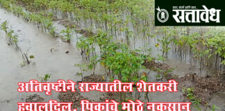 Team Sattavedh Farmers in the state distressed due to excessive rainfall, heavy crop damage : राज्यात ओला दुष्काळ जाहीर करण्याची मनसेची मागणी Chikhali : राज्यात अतिवृष्टीने शेतकरी हवालदिल झाले आहेत. लाखो हेक्टरवरील पिकांचे मोठ्या प्रमाणात नुकसान, शेकडो जनावरे दगावणे आणि जमिनी खरडून जाणे या गंभीर परिस्थितीत शेतकऱ्यांना तातडीची मदत न मिळाल्यास राज्यात तीव्र आंदोलन छेडू, … Continue reading Maharashtra Navnirman Sena : अतिवृष्टीने राज्यातील शेतकरी हवालदिल, पिकांचे मोठे नुकसान