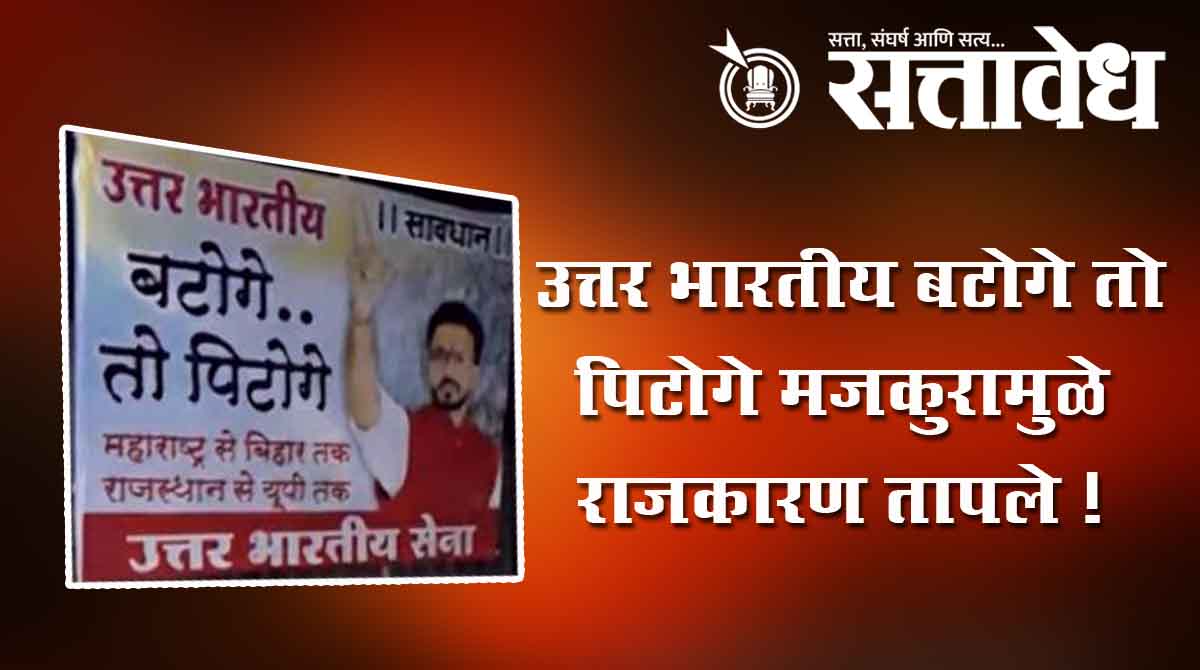 या बॅनरवर “सावधान! उत्तर भारतीय बटोगे तो पिटोगे” असा धमकीवजा मजकूर लिहिला असून, त्यासोबत “महाराष्ट्र से बिहार तक, राजस्थान से यूपी तक” अशी घोषणा दिली आहे. बॅनरच्या खाली उत्तर भारतीय सेना आणि तिचे अध्यक्ष सुनील शुक्ला यांचा फोटोही झळकत आहे. या वादग्रस्त घोषणेमुळे मुंबईत तणावाचे वातावरण निर्माण झाले आहे.