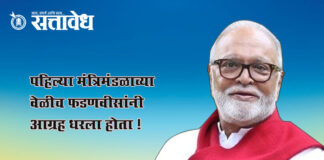 Team Sattavedh Chhagan Bhujbal said Devendra Fadnavis had insisted during the first cabinet : मी भाजपचा नव्हे तर राष्ट्रवादी काँग्रेसचा मंत्री Nagpur : मला मंत्री बनवण्यामध्ये मुख्यमंत्री देवेंद्र फडणवीस यांची भूमिका महत्वाची होती. खरं तर पहिल्या मंत्रिमंडळ गठनाच्या वेळीच फडणवीसांनी मला मंत्री बनवण्यासाठी आग्रह धरला होता. पण त्यावेळी आमच्या पक्षाने जे ठरवले होते, तेच झाले. … Continue reading Maharashtra Politics : पहिल्या मंत्रिमंडळाच्या वेळीच फडणवीसांनी आग्रह धरला होता !