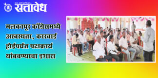 Team Sattavedh Row over nominated corporator selection; party loyalists hold a meet : मलकापूर काँग्रेसमध्ये अस्वस्थता, कारवाई होईपर्यंत पक्षकार्य थांबवण्याचा इशारा Malkapur नगरपालिकेच्या स्वीकृत नगरसेवक निवडणुकीत झालेल्या कथित अन्यायाच्या विरोधात काँग्रेसच्या निष्ठावान कार्यकर्त्यांनी मलकापूर येथे निर्धार सभेचे आयोजन केले. या सभेत अन्यायाविरोधात तीव्र नाराजी व्यक्त करत, दोषींवर कारवाई होत नाही तोपर्यंत पक्षाचे कार्य न करण्याचा … Continue reading Malkapur Congress : स्वीकृत नगरसेवक निवडीत अन्याय, निष्ठावानांची निर्धार सभा