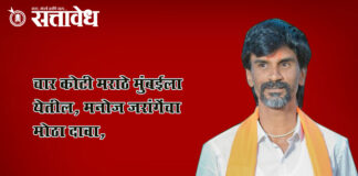 Team Sattavedh Four crore Marathas will come to Mumbai, Manoj Jaranges big claim : चार कोटी मराठे मुंबईला येतील, मनोज जरांगेंचा मोठा दावा, Parbhani : 29 ऑगस्ट रोजी केवळ दोन दिवसासाठी मुंबईला या, तिसर्या दिवशी आरक्षणाचा गुलाल अंगावर पडलाच समजा. यावेळी तीन ते चार कोटी मराठे मुंबईला येतील, असं वक्तव्य मनोज जरांगे पाटील यांनी केले … Continue reading Manoj Jarange : आरपारची लढाई, तिसर्या दिवशी आरक्षणाचा गुलाल !