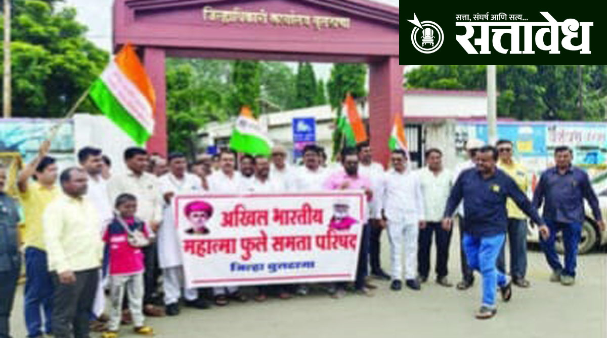 Buldhana “आरक्षण आमच्या हक्काचे, नाही कोणाच्या बापाचे” अशा घोषणांनी बुलढाणा शहर दणाणून गेले. २ सप्टेंबर रोजी राज्य शासनाने घेतलेल्या निर्णयानुसार मराठा समाजाला कुणबी ओबीसी प्रमाणपत्र मिळवून देण्याचा मार्ग मोकळा करण्यात आला आहे. या निर्णयाचा अखिल भारतीय महात्मा फुले समता परिषद आणि ओबीसी समाजाकडून तीव्र विरोध करण्यात आला. जिल्हाधिकारी कार्यालयासमोर मोठ्या संख्येने निदर्शने करत शासन निर्णय तात्काळ मागे घ्यावा, अशी मागणी करण्यात आली.