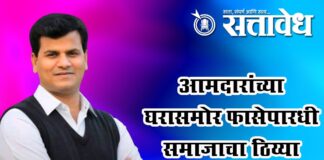 Team Sattavedh Fasepardhi community’s sit-in in front of the MLA’s house : मुख्यमंत्र्यांनी शिष्टमंडळाची भेट घ्यावी, मागण्यांसाठी केले आंदोलन Amravati राज्यात फासेपारधी समाजाच्या अनेक मागण्या प्रलंबित असतानाच या मागण्यांकडे शासनाचे लक्ष वेधण्यासाठी विदर्भ आदिवासी फासेपारधी समाज संघटनेच्या वतीने शुक्रवारी आमदार रवी राणा यांच्या निवासस्थानासमोर ठिय्या आंदोलन करण्यात आले. शंकरनगर परिसरात झालेल्या या आंदोलनात समाजबांधव मोठ्या … Continue reading MLA Ravi Rana : आमदारांच्या घरासमोर फासेपारधी समाजाचा ठिय्या