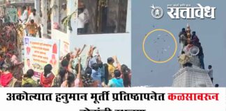 Team Sattavedh akola-hanuman-idol-installation-money-showered-from-temple-dome-devotees-stampede-like-situation : भाविकांची झुंबड, चेंगराचेंगरीसदृश परिस्थिती Akola : जिल्ह्यातील मनारखेड (ता. बाळापूर) येथे हनुमान मूर्ती प्रतिष्ठापना सोहळ्यात कळसावरून नोटा आणि नाण्यांची उधळण करण्यात आल्याची घटना घडली. या प्रकारामुळे कार्यक्रमस्थळी मोठी गर्दी उसळली असून नोटा वेचण्यासाठी भाविकांनी झुंबड घातल्याने काही काळ चेंगराचेंगरीसदृश परिस्थिती निर्माण झाली होती. सुदैवाने कोणतीही हानी झाली नाही. गावात नव्याने स्थापित … Continue reading Money showered : अकोल्यात हनुमान मूर्ती प्रतिष्ठापनेत कळसावरून नोटांची उधळण