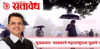 Team Sattavedh Fadnavis said, the emphasis remains, citizens should take care : फडणवीस म्हणाले, जोर कायम, नागरिकांनी घ्यावी काळजी Mumbai : महाराष्ट्रभर पावसाने अक्षरशः हाहाकार माजवला आहे. मराठवाडा, विदर्भ, पश्चिम महाराष्ट्र आणि कोकण या सर्व भागांत मुसळधार पावसाने जोर धरला आहे. हवामान विभागानं दिलेल्या अंदाजानुसार, पुढील काही दिवस पावसाचा जोर कायम राहणार आहे. नागरिकांनी काळजी … Continue reading Monsoon alert : मुसळधार… पावसाने महाराष्ट्राला धुतले !
