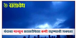 Team Sattavedh monsoon-forecast-india-el-nino-impact-rainfall-update-marathi-news : ‘एल निनो’चा प्रभाव वाढणार, शेतीसमोर आव्हानांची शक्यता Mumbai : यंदाच्या मान्सूनबाबत हवामान विभागाने दिलेल्या अंदाजामुळे देशातील शेतकरी आणि नागरिकांची चिंता वाढण्याची शक्यता आहे. हवामान विभागाचे महासंचालक डॉ. मृत्युंजय मोहपात्रा यांनी सांगितले की, यंदा देशात मोसमी पावसाचे प्रमाण सुमारे ८० सेंटीमीटर राहण्याचा अंदाज आहे. भारतातील १९७१ ते २०२० या कालावधीतील सरासरी पर्जन्यमान … Continue reading Monsoon forecast : यंदाचा मान्सून सरासरीपेक्षा कमी राहण्याची शक्यता