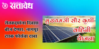 Team Sattavedh Nagpur Task Force claims that farmers will be provided with electricity during the day : जिल्हाधिकाऱ्यांच्या अध्यक्षतेत बैठक; ‘मुख्यमंत्री सौर कृषी वाहिनी’ योजनेची अंमलबजावणी Nagpur राज्याचे मुख्यमंत्री हे ऊर्जामंत्री देखील आहेत. पण त्यांच्या गृह जिल्ह्यातच गेल्या सहा महिन्यांपासून विजेचा लपंडाव सुरू आहे. अख्खा जिल्हा महावितरणच्या गलथान कारभाराने त्रस्त आहे. अश्यात ‘मुख्यमंत्री सौर कृषी … Continue reading Mukhyamantri Saur Krishi Vahini Yojana : शेतकऱ्यांना दिवसा वीज देणार, नागपूर टास्क फोर्सचा दावा