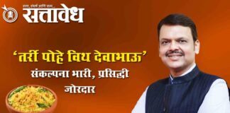 Team Sattavedh But criticism that dialogue has faded due to lack of Nagpuri flair : पण नागपुरी तडक्याअभावी संवाद फिका पडल्याची टीका Nagpur : संत्रानगरी आणि कॉटन सिटी अशी ओळख असलेल्या नागपूरने अलीकच्या काळात आपल्या खाद्यसंस्कृतीच्या बळावर स्वतंत्र अशी नवी ओळख निर्माण केली आहे. सावजी मटण असो किंवा सकाळच्या नाश्त्याचा अविभाज्य भाग बनलेले ‘तर्री पोहे’ … Continue reading Municipal Election : ‘तर्री पोहे विथ देवाभाऊ’ संकल्पना भारी, प्रसिद्धी जोरदार