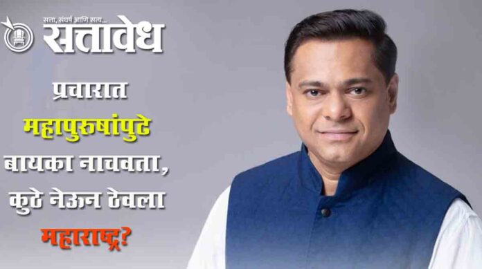 निवडणूक प्रचारासाठी वार्ड 157 मध्ये चक्का महिलांच्या डान्सचा कार्यक्रम आयोजित केल्याचा आरोप करत शिवसेना ठाकरे गटाचे युवा नेते अखिल चित्रे यांनी सोशल मीडियावरून भाजपवर हल्लाबोल केला आहे. “हा व्हिडीओ पहा, तुमच्या तळपायाची आग मस्तकात जाईल. भाजपा मुंबईत प्रचारसभांमध्ये महिलांना नाचवून गर्दी जमवत आहे. आणि हे करताना भाजपाच्या महाभागांना याचंही भान नाही की मागे युगपुरुष छत्रपती शिवाजी महाराज आणि देशाला संविधान देणाऱ्या महामानव डॉ. बाबासाहेब आंबेडकर यांच्या प्रतिमा आहेत. आमच्या महापुरुषांपुढे बायका नाचवता, कुठे नेऊन ठेवला आहे आमचा महाराष्ट्र?” असा संतप्त सवाल अखिल चित्रे यांनी उपस्थित केला आहे.