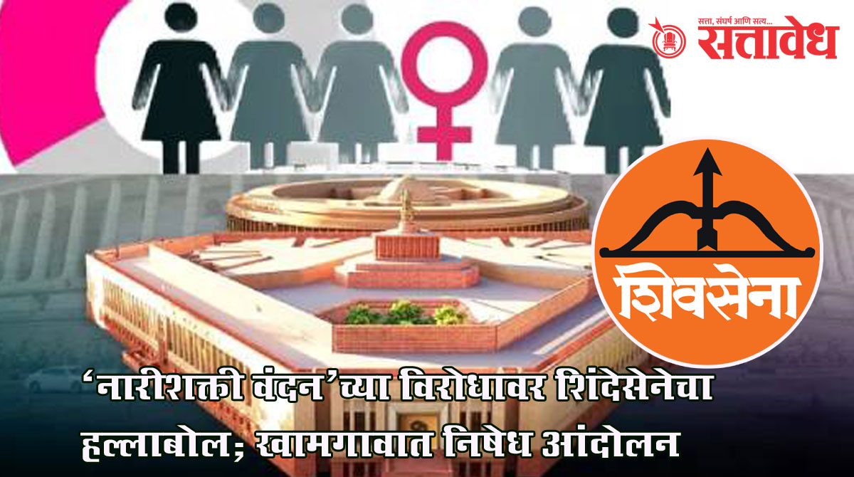 Shivsena (Eknath Shinde) slams opposition to ‘Nari Shakti Vandan; protest held in Khamgaon : इंडिया आघाडीवर महिलांविरोधी भूमिकेचा आरोप; एसडीओ कार्यालयासमोर घोषणाबाजी