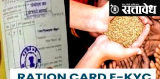 Team Sattavedh e-KYC mandatory for ration card holders : अन्नसुरक्षा योजनेच्या लाभार्थ्यांना अनिवार्य, प्रक्रिया सुलभ केली Akola राष्ट्रीय अन्नसुरक्षा योजनेत (NFSA) शिधापत्रिकाधारकांसाठी ई-केवायसी (e-KYC) अनिवार्य करण्यात आली आहे. लाभार्थ्यांनी ३१ मार्चपूर्वी ही प्रक्रिया पूर्ण करणे आवश्यक आहे. ई-केवायसी प्रक्रिया आता ‘मेरा केवायसी’ या मोबाईल ॲपद्वारे सहज आणि सोपी झाली आहे, असे जिल्हा पुरवठा अधिकारी निखिल … Continue reading National Food Security Scheme : रेशन कार्ड आहे? मग e-KYC करा, अन्यथा…