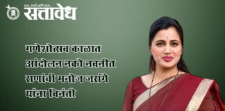 Team Sattavedh An appeal to Manoj Jarange not to hold protests during the Ganeshotsav period : अकरा दिवसानंतरही मागण्या मांडता येतील, माजी खासादाराचा सल्ला Amravati मराठा आरक्षणाची मागणी पुन्हा एकदा गाजत असताना, आंदोलनकर्ते मनोज जरांगे आणि त्यांचे समर्थक मुंबईकडे निघाले आहेत. या पार्श्वभूमीवर समर्थन आणि विरोधाचे सूर उमटत आहेत. भाजप नेत्या आणि अमरावतीच्या माजी खासदार … Continue reading Navneet Rana : गणेशोत्सव काळात आंदोलन नको; नवनीत राणांची मनोज जरांगे यांना विनंती