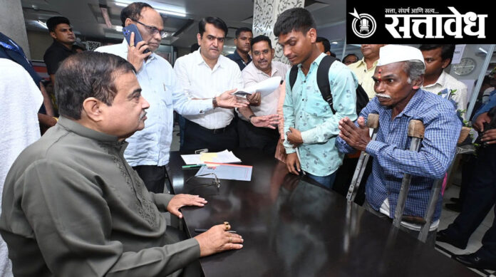 केंद्रीय रस्ते वाहतूक व महामार्ग मंत्री नितीन गडकरी यांच्या जनसंपर्क कार्यक्रमात ज्येष्ठ नागरिक व दिव्यांग बांधवांनी गर्दी केली होती. यावेळी गडकरींनी दिव्यांगांना मदतीचा हात दिला, तर ज्येष्ठांनाही आधार देऊन दिलासा दिला. अनेकांनी ऑन दि स्पॉट काम झाल्यामुळे गडकरींचे आभार मानले.