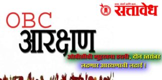 Team Sattavedh OBCs Finalize Strategy, to Fight Reservation Battle on Two Fronts : ओबीसींच्या आरक्षणाला धक्का लागू नये, हक्कांचे संरक्षण व्हावे Nagpur : मराठा आरक्षणाच्या संदर्भात राज्य सरकारने नवा शासन निर्णय काढून अन्याय केल्याची भावना ओबीसी समाजाची झाली आहे. या अन्यायाच्या विरोधात लढा देण्यासाठी आज (६ सप्टेंबर) नागपुरात विदर्भातील प्रमुख ओबीसी नेत्यांची बैठक घेण्यात आली. … Continue reading OBC Reservation : ओबीसींची व्युहरचना ठरली, दोन स्तरांवर लढणार आरक्षणाची लढाई !