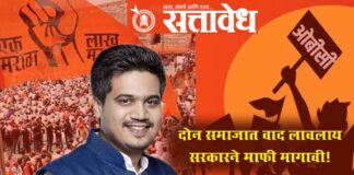 Team Sattavedh Rohit Pawars direct accusation against the government : रोहित पवारांचा सरकारवर थेट आरोप Mumbai : मराठा समाजाच्या आरक्षण लढ्याला मोठा टप्पा गाठून देणाऱ्या मनोज जरांगे पाटील आणि त्यांना साथ देणाऱ्या सामान्य मराठा बांधवांचे मनापासून अभिनंदन करतो, असं राष्ट्रवादी काँग्रेसचे आमदार रोहित पवार यांनी म्हटलं आहे. मात्र, यानिमित्ताने अनेक गंभीर प्रश्न उपस्थित होत असल्याचं … Continue reading OBC Vs Maratha : दोन समाजात वाद लावला; सरकारने माफी मागावी!