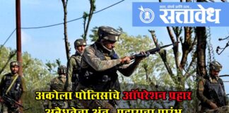 Team Sattavedh Police Superintendent takes strong action against illegal businesses : पोलीस अधिक्षकांचा कारवाईचा धडाका; प्रभावी अंमलबजावणी Akola जिल्ह्यात कायदा व सुव्यवस्था अबाधित राखण्यासोबतच अवैध धंद्यांवर प्रभावी कारवाई करण्यासाठी नव्याने रुजू झालेले पोलीस अधीक्षक अर्चित चांडक यांनी ‘ऑपरेशन प्रहार’ या विशेष मोहिमेची घोषणा केली आहे. “अवैधतेचा अंत, प्रहाराचा प्रारंभ” या ब्रीदवाक्याच्या माध्यमातून जिल्ह्यातील विविध अवैध … Continue reading Operation Prahar : अकोला पोलिसांचे ‘ऑपरेशन प्रहार’; अवैधतेचा अंत, प्रहाराचा प्रारंभ
