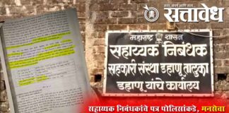 Team Sattavedh Assistant Registrar’s letter to police, MNS warns of agitation : सहाय्यक निबंधकांचे पत्र पोलिसांकडे, मनसेचा आंदोलनाचा इशारा Palghar : पालघर जिल्ह्याच्या तलासरीमध्ये तब्बल शेकडो कोटींच्या जमिनीचा घोटाळा समोर आल्यानंतर खळबळ उडाली आहे. तलासरीतील काजळी सहकारी सामुदायिक शेती संस्था मर्यादित या संस्थेच्या नावावर असलेली 55 एकर शेती जमीन मुंबई अहमदाबाद राष्ट्रीय महामार्गालगतची जमीन 2022 … Continue reading Palghar Land Scam : सात कोटींच्या बाजारमूल्याच्या जमिनीची केवळ 70 लाखांना विक्री