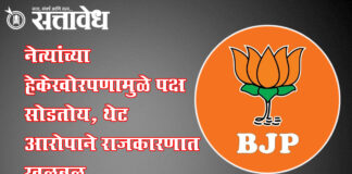 Team Sattavedh Party workers allege that they are leaving the party due to the stubbornness of the leaders : भाजपला धक्का, ज्येष्ठ कार्यकर्त्यांचे राजीनामा सत्र Buldhana भारतीय जनता पक्षात अंतर्गत अस्वस्थता वाढत असल्याचे चित्र पुन्हा एकदा समोर आले असून, भाजपाचे जुने व सक्रिय कार्यकर्ते पद्मनाभ (सोनू) जगदेवराव बाहेकर, माजी नगरसेवक अरविंद पांडुरंग होंडे आणि शहर … Continue reading नेत्यांच्या हेकेखोरपणामुळे पक्ष सोडतोय’, थेट आरोपाने राजकारणात खळबळ