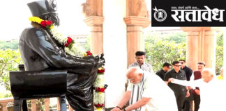 Team Sattavedh Prime Minister Narendra Modi visits RSS office : सरसंघचालक, गडकरी, फडणवीसही होते सोबत Nagpur पंतप्रधान नरेंद्र मोदी यांनी आज, रविवार दि. ३० मार्चला रेशीमबाग येथील राष्ट्रीय स्वयंसेवक संघाच्या स्मृती मंदिराला भेट दिली. यावेळी त्यांनी राष्ट्रीय स्वयंसेवक संघाचे संस्थापक आद्यसरसंघचालक डॉ. केशवबळीराम हेडगेवार यांच्या स्मृतिंना अभिवादन केले. तसेच द्वितीय सरसंघचालक गोळवलकर गुरुजी यांच्या समाधीस्थळाला … Continue reading PM Modi Nagpur Visit : पंतप्रधान मोदी संघभूमित, स्मृति मंदिराला भेट!