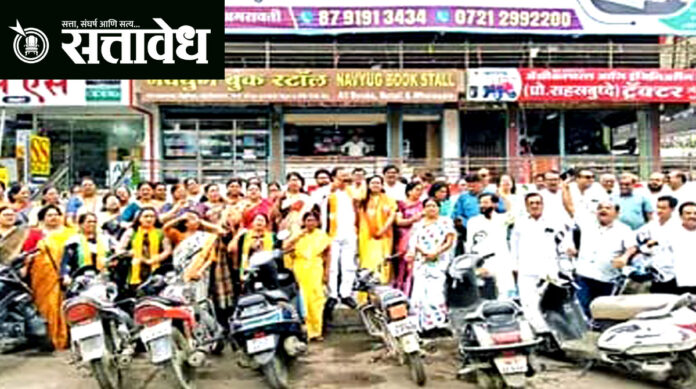 या आंदोलनात भाजपचे प्रदेश सचिव जयंत डेहनकर, प्रवक्ते शिवराय कुलकर्णी, शहर जिल्हा सरचिटणीस बादल कुलकर्णी, ललित समदुरकर, राधा कुरील, ॲड. प्रशांत देशपांडे, गंगा खारकर, सुरेखा लुंगारे, लता देशमुख, महिला आघाडी सरचिटणीस सविता भागवत, शीतल वाघमारे, जया माहोरे, जयश्री कुबडे, भारती गुहे, मिलिंद बांबल, लखन राज, अशोक नागवानी, राजू राजदेव, गजानन देशमुख, वनमाला सोनोने, संगीता बुरंगे, नूतन भुजाडे, रेखा भुतडा, अंजली पाठक आदी पदाधिकारी व कार्यकर्ते सहभागी झाले. राजकमल चौकात झालेल्या या आंदोलनावेळी भाजपच्या घोषणांनी परिसर दणाणून गेला.