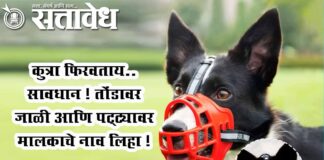 Team Sattavedh Dog muzzles and owner’s name on leashes are mandatory : कुत्र्यांचा उपद्रव झाल्यास नागरिकांनी ११२ क्रमांकावर संपर्क साधावा Nagpur : कुत्रे पाळण्याची आवड लहानापासून ते मोठ्यांपर्यंत आणि गरीबांपासून ते श्रीमंतांना असते. हो लोक सकाळ संध्याकाळ लाडक्या कुत्र्यांना फिरायला बाहेर नेतात. पण आता बाहेर कुत्रा फिरवताना सावधानी बाळगण्याची गरज आहे. पाळीव कुत्र्यांना घराबाहेर फिरवताना … Continue reading Police Commissioner : कुत्रा फिरवताय.. सावधान ! तोंडावर जाळी आणि पट्ट्यावर मालकाचे नाव लिहा !