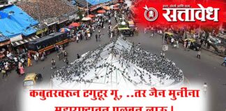 Team Sattavedh Jain sages should be abducted from Maharashtra : ‘आम्ही गिरगावकर’ राजकीय लोक नसून साधी माणसे Mumbai : कबुतराच्या वादावरून महाराष्ट्रातील राजकारण पेटू लागले आहे. राजकीय पक्ष स्थापन करू, या जैन मुनींच्या घोषणेनंतर कबुतर वादात आणखी भर पडली आहे. या वादावर रोज क्रिया-प्रतिक्रिया उमटत आहेत. या वादात आता मुंबईतील ‘आम्ही गिरगावकर’ या संस्थेने उडी … Continue reading Politics Takes Flight Over a Pigeon : कबुतरवरून टगुटूर गू’, ..तर जैन मुनींना महाराष्ट्रातून पळवून लाऊ !