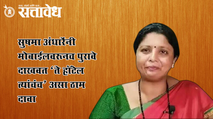 Sushma Andhare firmly claims hotel belongs, showing evidence from mobile phone : सुषमा अंधारेंनी मोबाईलवरूनच पुरावे दाखवत ‘ते हॉटेल त्यांचंच’ असा ठाम दावा