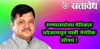 Team Sattavedh Generic medicines should be provided from the medical stores of hospitals, demand of Praveen Darekar : भाजप गटनेते प्रवीण दरेकर यांची मागणी Mumbai : राज्यातील रुग्णालयांत मेडिकल स्टोअर देऊन त्यात जनेरिक औषध असावीत असा केंद्र सरकारचा निर्णय आहे. त्या निर्णयाप्रमाणे राज्यासह मुंबईतील रुग्णालयांमध्ये जनेरिक औषधे उपलब्ध करून देण्यासंदर्भात शासन ठोस निर्णय घेणार का, … Continue reading Pravin Darekar : रुग्णालयांच्या मेडिकल स्टोअरमधून द्यावी जेनेरिक औषधं !