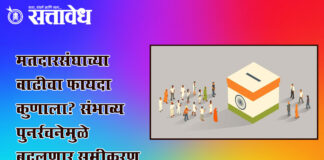 Team Sattavedh Buldhana may get two new Legislative Assembly constituency after delimitation : बुलढाणा जिल्ह्यात दोन नवे विधानसभा मतदारसंघ वाढण्याची शक्यता Buldhana देशभरात जनगनना सुरू होणार असून त्यानंतर लोकसभा आणि विधानसभा मतदारसंघांच्या संभाव्य पुनर्रचना होण्याची शक्यता आहे.या परिसिमनानंतर बुलढाणा जिल्ह्यात दोन नवे विधानसभा मतदारसंघ वाढू शकतात, अशी चर्चा प्रशासकीय आणि राजकीय वर्तुळात रंगू लागली आहे. … Continue reading Proposed Delimitation : मतदारसंघाच्या वाढीचा फायदा कुणाला? संभाव्य पुनर्रचनेमुळे बदलणार समीकरण