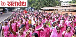 Team Sattavedh Protest demanding cancellation of FRS and grant of government status : बुलढाण्यात अंगणवाडी सेविकांचे शक्तिप्रदर्शन; केंद्र सरकारविरोधात आवाज Buldhana अंगणवाडी बालवाडी कर्मचारी संघटनेच्या वतीने विविध प्रलंबित मागण्या व फेस रिकग्निशन सिस्टीम (FRS) विरोधात एकदिवसीय आंदोलन करण्यात आले. या आंदोलनातून केंद्र सरकारच्या धोरणांविरोधात रोष व्यक्त करत जिल्हाधिकाऱ्यांमार्फत पंतप्रधानांना निवेदन देण्यात आले. या आंदोलनात अंगणवाडी … Continue reading Protest by anganwadi karmachari : अंगणवाडी कर्मचाऱ्यांचा एल्गार; FRS रद्द व शासकीय दर्जासाठी आंदोलन