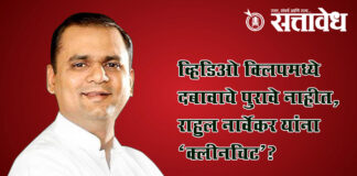Team Sattavedh Assembly Speaker gets clean chit in candidate threat case : उमेदवारांना धमकावल्या प्रकरणी निवडणूक आयोगाचे स्पष्टीकरण, ‘इक्बालसिंह चहल’ यांच्या अहवालाकडे लक्ष Mumbai कोलाबा विधानसभा मतदारसंघातील मुंबई महानगरपालिका निवडणुकीच्या रणधुमाळीत भाजप नेते आणि विधानसभा अध्यक्ष राहुल नार्वेकर यांच्यावर झालेल्या गंभीर आरोपांनी राजकीय वातावरण तापले आहे. प्रभाग २२५, २२६ आणि २२७ मधील उमेदवारांना धमकावल्याच्या आणि … Continue reading Rahul Narvekar : व्हिडिओ क्लिपमध्ये दबावाचे पुरावे नाहीत, राहुल नार्वेकर यांना ‘क्लीनचिट’?