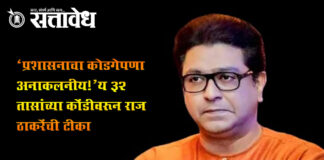 Team Sattavedh MNS-leader-slams-maharashtra-government-over-mumbai-pune-expressway-mess-and-toll-policy : टोल वसुलीत तत्परता, मग सुविधा देण्यात कसूर का?, अभूतपूर्व कोंडीत अडकलेल्या प्रवाशांचा टोल परत करण्याची मनसे प्रमुखांची मागणी Mumbai मुंबई-पुणे द्रुतगती मार्गावर गॅस टँकर उलटल्यामुळे झालेल्या ३२ तासांच्या अभूतपूर्व वाहतूक कोंडीवरून महाराष्ट्र नवनिर्माण सेनेचे अध्यक्ष राज ठाकरे यांनी ५ फेब्रुवारी रोजी राज्य सरकारवर सडकून टीका केली आहे. “दोन प्रमुख शहरांना जोडणारा … Continue reading Raj Thackeray : ‘प्रशासनाचा कोडगेपणा अनाकलनीय!’; ३२ तासांच्या कोंडीवरून राज ठाकरेंची टीका