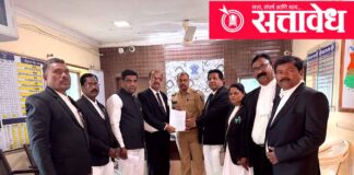 Team Sattavedh Mehkar Bar Association steps up protest against Girish Mahajan : प्रजासत्ताक दिनी डॉ. बाबासाहेब आंबेडकरांचे नाव टाळल्याचा आरोप; नाशिकमधील भाषणावरून संतापाची लाट Mehkar प्रजासत्ताक दिनाच्या शासकीय कार्यक्रमात भारतीय संविधानाचे शिल्पकार महामानव डॉ. बाबासाहेब आंबेडकर यांचे नाव भाषणात न घेतल्याचा गंभीर आरोप करत, राज्याचे ग्रामविकास मंत्री तथा नाशिकचे पालकमंत्री गिरीश महाजन यांच्याविरोधात मेहकर येथील … Continue reading Republic Day : गिरीश महाजन यांच्या विरोधात मेहकर वकील संघ आक्रमक!