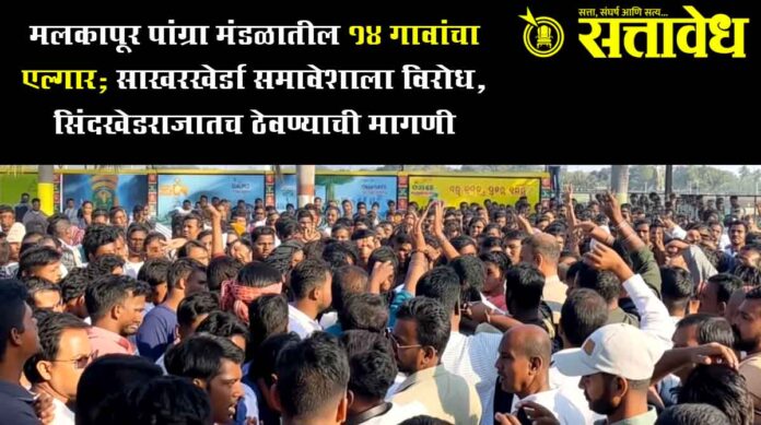 Malkapur साखरखेर्डा येथे नुकतेच अपर तहसील कार्यालय मंजूर करण्यात आले असून या कार्यालयांतर्गत मलकापूर पांग्रा महसूल मंडळातील १४ गावांचा समावेश प्रस्तावीत आहे. या प्रस्तावीत बदलाला १४ गावांनी विरोध दर्शवत एल्गार पुकारला आहे. या संदर्भात गावकऱ्यांनी ग्रामसभा ठरावांसह जिल्हाधिकारी कार्यालय, बुलढाणा येथे निवेदन सादर केले असून, मागणी मान्य न झाल्यास १ मे २०२६ पासून बेमुदत उपोषणाचा इशारा दिला आहे.