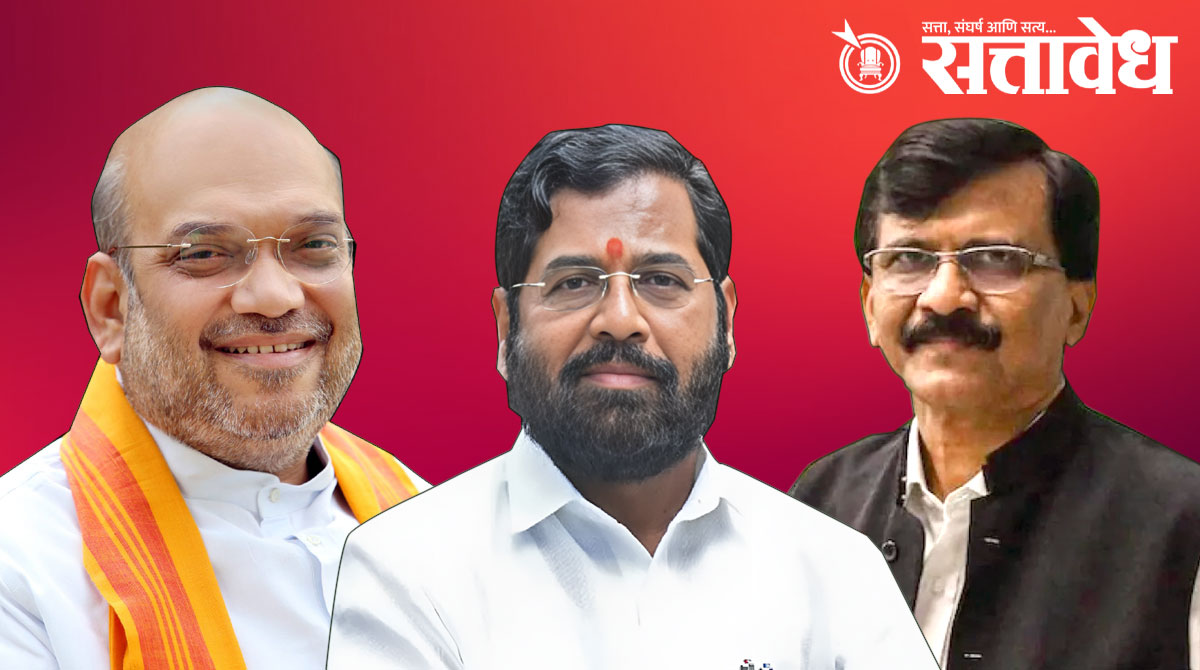 मराठी एकजुटीच्या विजय मेळाव्यानंतर महाराष्ट्राच्या राजकारणाला जोरदार धक्के बसले आहेत. त्याचे रूपांतर भूकंपाच्या जोरदार धक्क्यात होईल व आपले राज्य पत्त्यांच्या बंगल्याप्रमाणे कोसळून पडेल. याची सगळ्यांत जास्त भीती एकनाथ शिंदे व त्यांच्या बरोबरच्या लोकांना वाटते. ते बरोबर आहे. एकनाथ शिंदे हे चिंताग्रस्त होउढन लगेच दिल्लीत गेले. त्यांचे गुरू अमित शहांना भेटले. महाराष्ट्रात सध्या जे घडते आहे ते थांबवा. मुख्यमंत्री देवेंद्र फडणवीस यांना हे वादळ रोखता येणार नाही. यावर अमित शहा यांनी विचारले, काय करायचे? त्यावर शिंदे म्हणाले, ‘ मी माझ्या लोकांसह भाजपमध्ये येतो. मला मुख्यमंत्री करा. हे सर्व रोखण्याची गारंटी देतो.’ शहा आणि शिंदे यांच्यात ही चर्चा झाली व अशी चर्चा झाल्याची चर्चा शिंदे गटात आहे, असा दावाb संजय राऊत यांनी केला आहे.