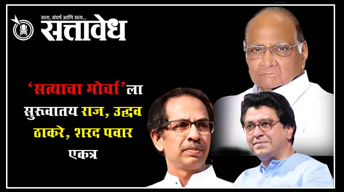 Mumbai : मुंबईत मनसे, महाविकास आघाडी आणि डावे पक्ष यांच्या संयुक्त नेतृत्वाखाली ‘सत्याचा मोर्चा निघाला आहे. राज्यभर या मोर्चाची चर्चा रंगली असून, या पार्श्वभूमीवर राज ठाकरे दादर येथून लोकलने चर्चगेटला पोहोचले आहेत. शरद पवार आणि उद्धव ठाकरे देखील मोर्चाच्या स्थळी रवाना झाले असून, इतर विरोधी पक्षांचे नेतेही सहभागी होणार आहेत.