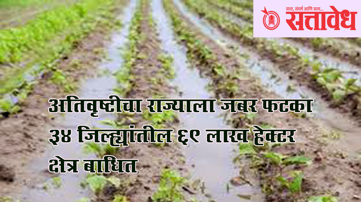 Mumbai जून ते सप्टेंबर या काळात झालेल्या अतिवृष्टीमुळे राज्यातील खरीप हंगामाला जबर फटका बसला आहे. प्राथमिक अंदाजानुसार ३४ जिल्ह्यांतील तब्बल ६८ लाख ६९ हजार ७५६ हेक्टरवरील पिके बाधित झाली आहेत. एकूण २२८ तालुके आणि ६५४ हून अधिक महसूल मंडळांतील पिकांचे मोठ्या प्रमाणात नुकसान झाले आहे.