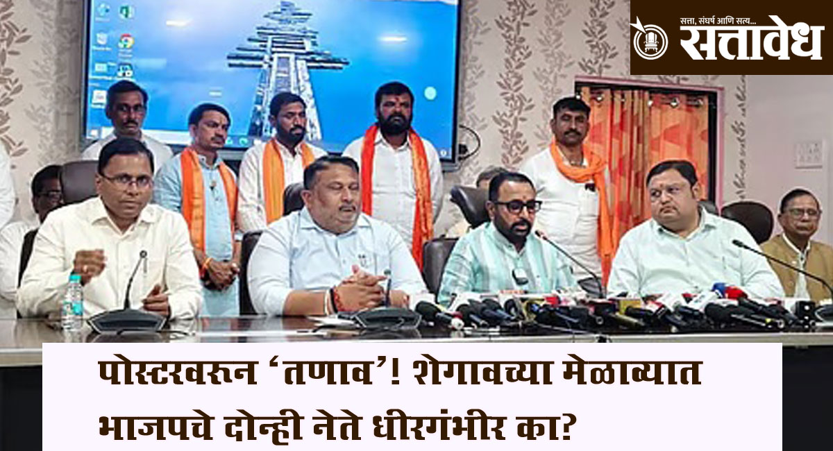 Shegao येथे होणाऱ्या राष्ट्रीय आरोग्य मेळाव्याच्या पोस्टरने जिल्ह्यातील राजकारणात नव्या चर्चांना तोंड फोडले आहे. पोस्टरमध्ये विद्यमान आमदारांसोबत शिंदेसेनेच्या दोन माजी आमदारांची छायाचित्रे झळकल्याने राजकीय वर्तुळात तर्क-वितर्कांना उधाण आले आहे.