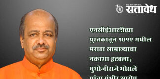 Team Sattavedh nagpur-mudhoji-raje-bhosale-allegation-ncert-removed-1759-maratha-empire-map : राजपूत घराण्यांच्या दबावाखाली कारवाई झाल्याचा दावा; ‘कटक ते अटक’ विस्तार नाकारणे म्हणजे इतिहासाशी छेडछाड Nagpur नागपूरमध्ये शिवजयंतीनिमित्त आयोजित कार्यक्रमात नागपूरकर भोसले राजघराण्याचे वंशज मुधोजीराजे भोसले यांनी एनसीईआरटीच्या आठवीच्या इतिहासाच्या पुस्तकातील १७५९ सालचा मराठा साम्राज्याचा विस्तार दर्शवणारा नकाशा एकतर्फी हटवण्यात आल्याचा गंभीर आरोप केला आहे. संबंधित नकाशा शैक्षणिक वर्ष २०२५-२६ च्या पुस्तकातून … Continue reading Shiv Jayanti 2026 : एनसीईआरटीच्या पुस्तकातून १७५९ मधील मराठा साम्राज्याचा नकाशा हटवला; मुधोजीराजे भोसले यांचा गंभीर आरोप