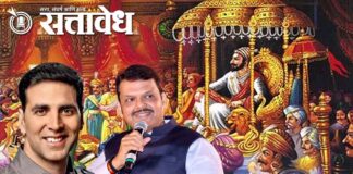 Team Sattavedh CM Devendra Fadnavis fantastic response to Akshay Kumars question : मुख्यमंत्री देवेंद्र फडणवीस यांनी अक्षय कुमारच्या प्रश्नाला दिला भन्नाट प्रतिसाद Mumbai : बॉलिवूडचा ‘खिलाडी’ अभिनेता अक्षय कुमार आणि महाराष्ट्राचे मुख्यमंत्री देवेंद्र फडणवीस एका मुलाखतीच्या निमित्ताने एकत्र आले, ‘फिक्की’ फेडरेशन ऑफ इंडियन चेंबर्स ऑफ कॉमर्स अँड इंडस्ट्रीजच्या विशेष कार्यक्रमात अक्षय कुमारने स्वतः फडणवीसांची मुलाखत … Continue reading Shivrajabhishek : महाराष्ट्र’ चित्रपटाचा पहिला सीन शिवराज्याभिषेकाचा असावा!